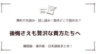 原作どこで読める? 無料先読み!『後悔さえも贅沢な貴方たちへ』どこで読める?韓国版・海外版・日本語版まとめ! 『後悔さえも贅沢な貴方たちへ』は、家族と夫への復讐を誓う悪役の壮大な物語。原作小説やウェブトゥーン版が読めるサイト情報を徹底紹介!韓国版・海外版・日本語版の更新スケジュールや無料試し読みの方法も掲載中。復讐劇ファン必見! 2025.12.22 原作どこで読める?