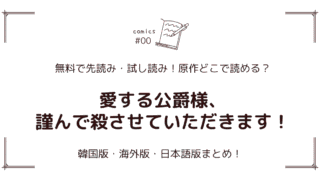 原作どこで読める? 無料試し読み!?『愛する公爵様、謹んで殺させていただきます!』原作漫画どこで読める?海外版・日本語版まとめ! 乙女ゲーム転生ラブコメ『愛する公爵様、謹んで殺させていただきます!』の原作漫画を日本語・英語で読む方法を紹介。無料試し読みや最新話情報、海外版配信サイトも解説。殺意と恋心が交錯する予測不能の物語を楽しもう。 2025.12.26 原作どこで読める?