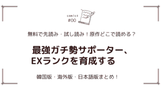 原作どこで読める? 無料試し読み!?『最強ガチ勢サポーター、EXランクを育成する』原作漫画どこで読める?海外版・日本語版まとめ! サポーターが世界を救う、これまでにない育成無双ストーリー『最強ガチ勢サポーター、EXランクを育成する』の原作漫画(서포터가 다 해먹음)の配信情報を徹底調査。日本語版/韓国語版/英語版(海外版)それぞれの掲載先・無料試し読み可能かどうか・最新話・完結状況などをまとめて紹介します。 2026.01.06 原作どこで読める?