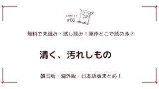 原作どこで読める? 無料先読み!?『清く、汚れしもの』原作漫画どこで読める?韓国版・海外版・日本語版まとめ! 『清く、汚れしもの』「どこで読めるの?」「無料で先読みはできる?」「最新話はどこ?」といった疑問を徹底解説。韓国版・海外版・日本語版の配信状況をまとめ、読者が自分に合った形で楽しめるように案内します。『清く、汚れしもの』をこれから読み始めたい人も、最新話を追いかけたい人も必見の内容です。 2025.12.26 原作どこで読める?